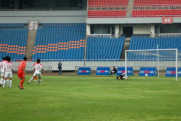 随着6号“点球专家”于飞的一脚巧射,场上的比分变为1:0。