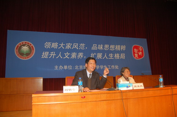 最后,刘明奇老师代表学校向周秉德老师赠送礼物,并表达了理工学子对周老师的欢迎,希望她以后还能来理工大学,带给同学们精彩的讲座。