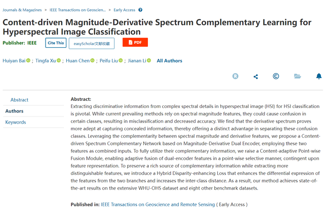 近日,北京理工大学光电学院许廷发教授科研团队在高光谱遥感图像处理领域取...