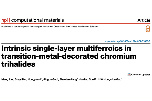 近日,北京理工大学集成电路与电子学院孙家涛教授在过渡金属修饰单层三卤化...